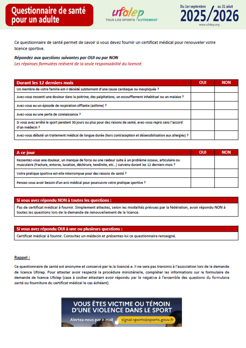 Retrouvez ci-après les documents utiles et nécessaires à vos prises de licences pour la saison 2025/2026.
