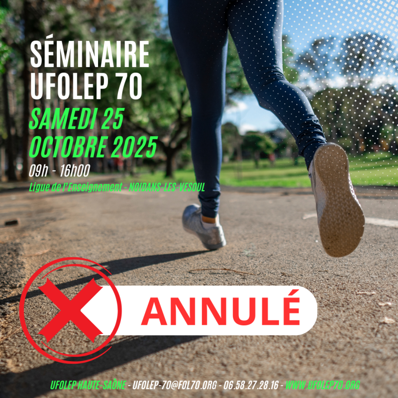 En raison d'un trop faible nombre de personnes inscrites (hors membres du comité UFOLEP), nous avons malheureusement pris la décision d'annuler le Séminaire départemental UFOLEP (70)...